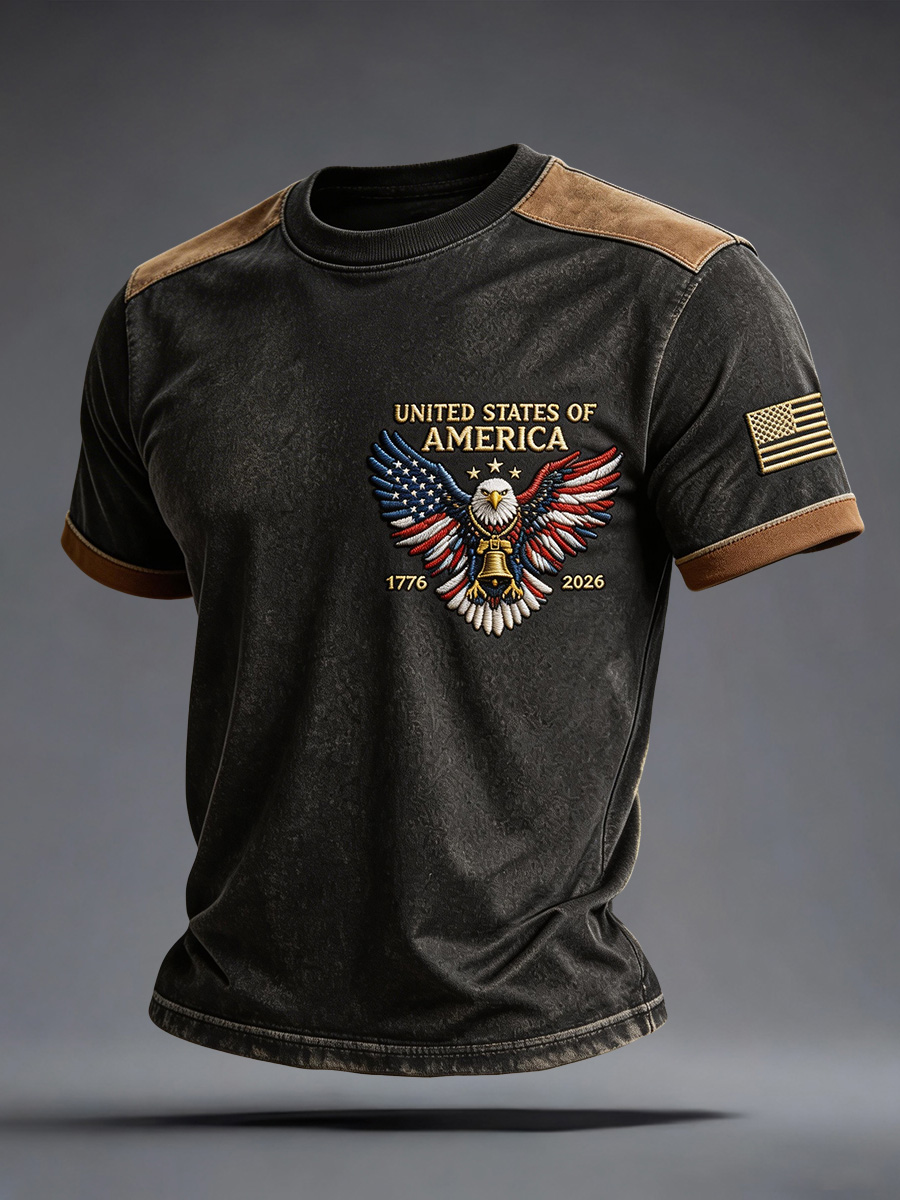 Men's American inspired Floral Embroidery Pattern T-Shirt