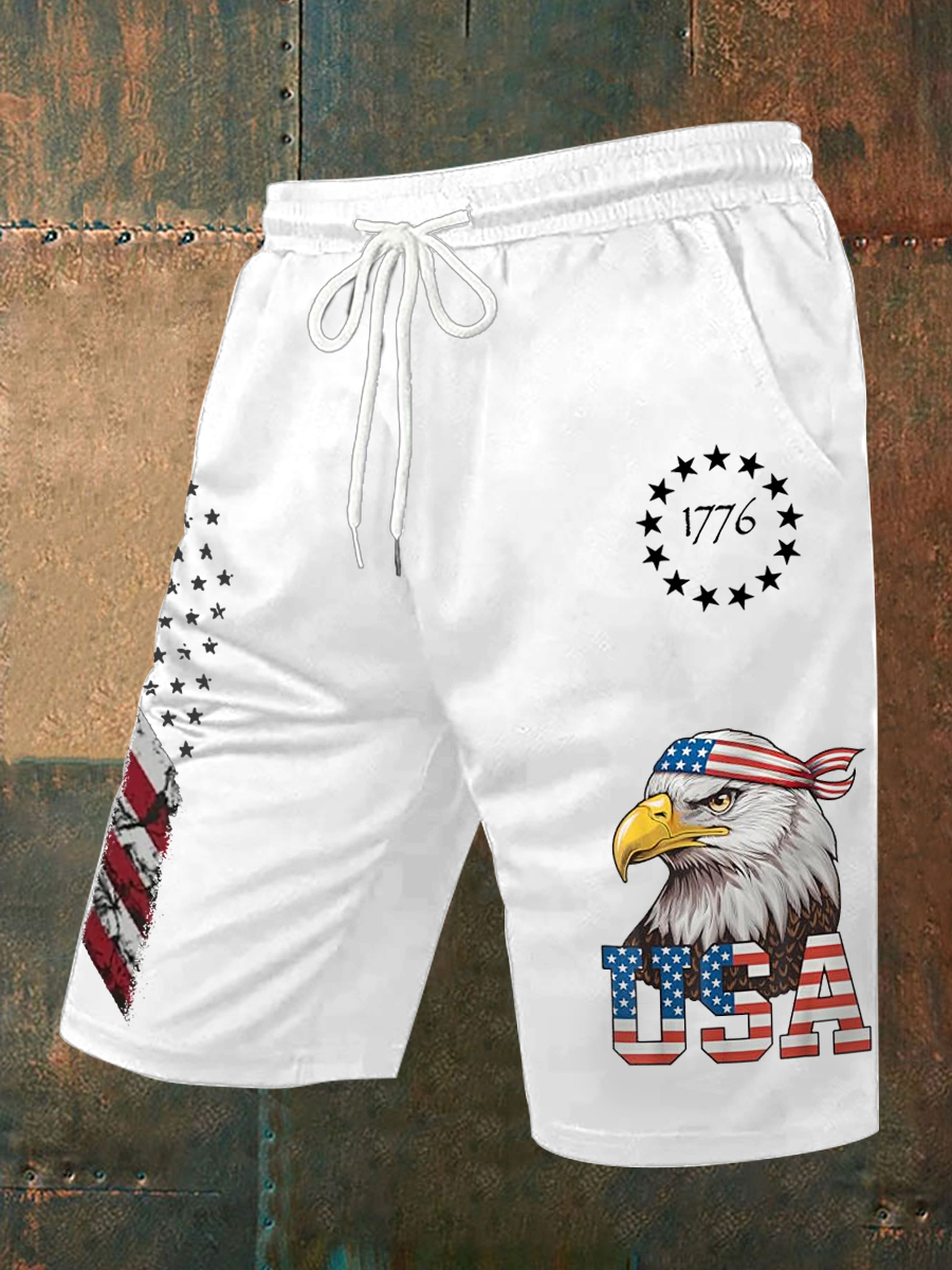 Men's Independence Day USA Flag Bald Eagle Print Casual Shorts