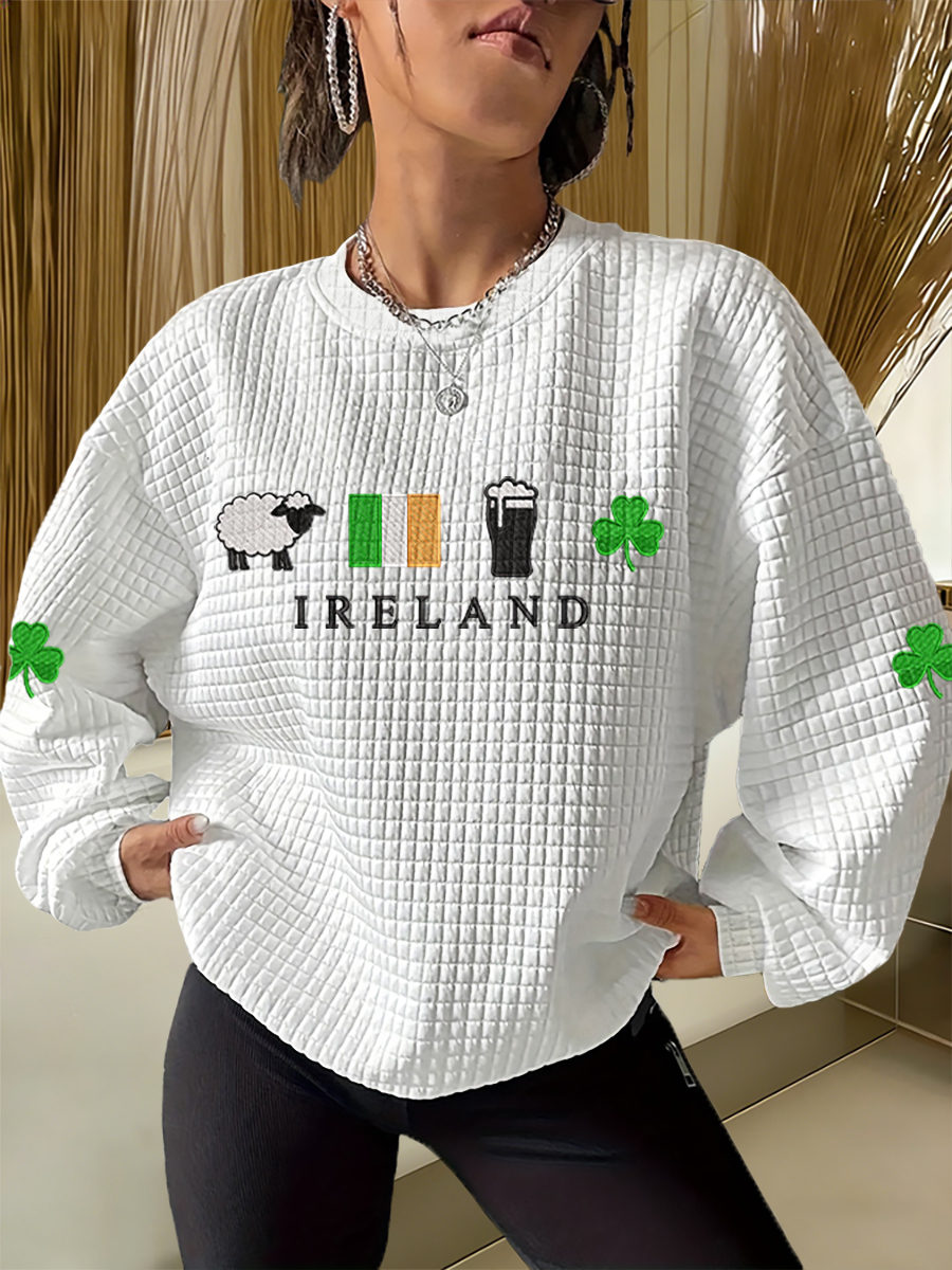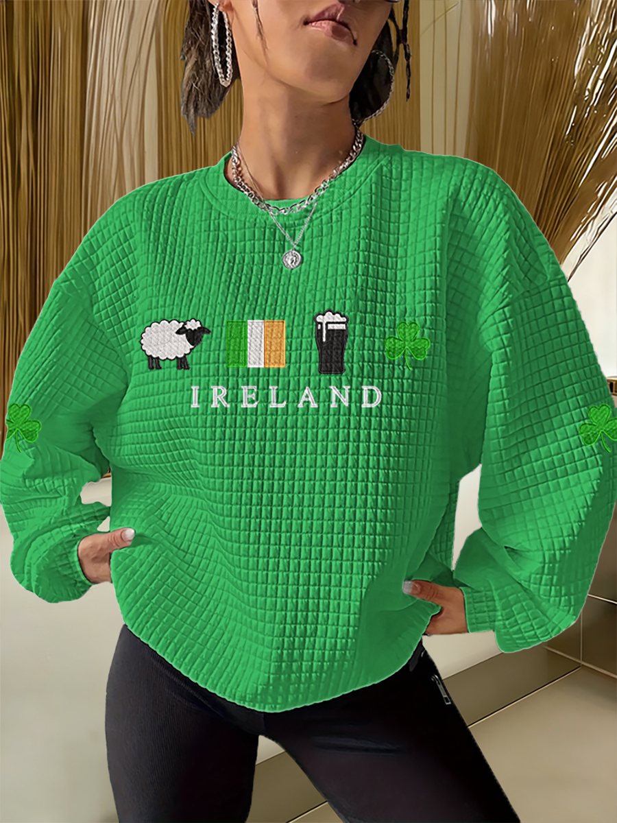 Women's Erin Go Bragh Ireland Forever Celtic Knot Shamrock Print Casual Sweatshirt