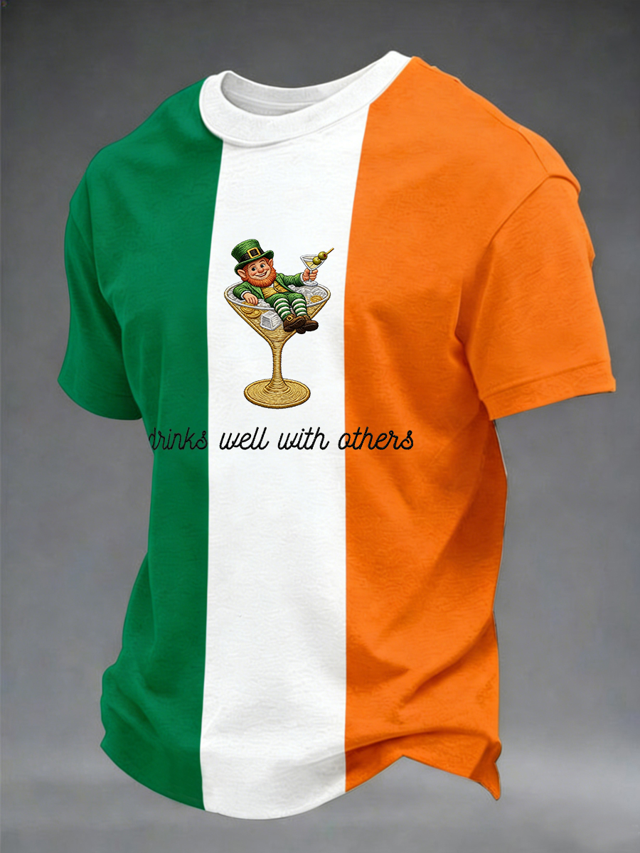 Men's St. Patrick's Day Drinks Well With Others Print Casual Tee
