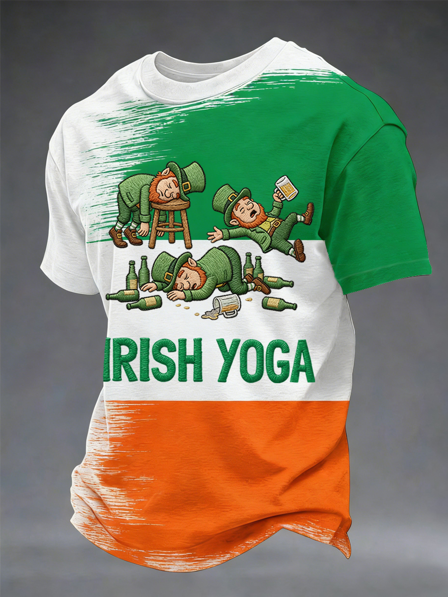 Men's Funny St. Patrick's Day Irish Yoga Print Casual Tee