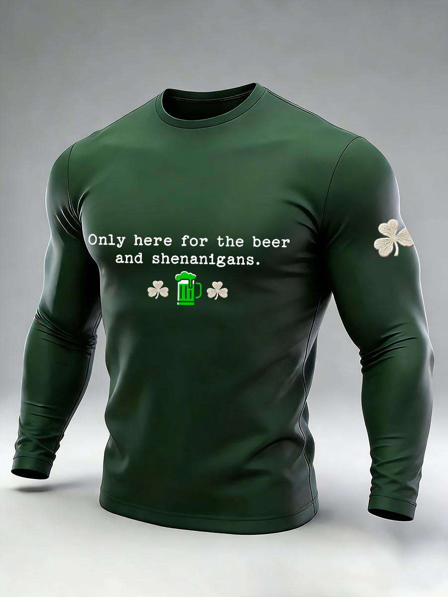 Men's Only Here For The Beer And Shenanigans Long Sleeve Round Neck T-shirt