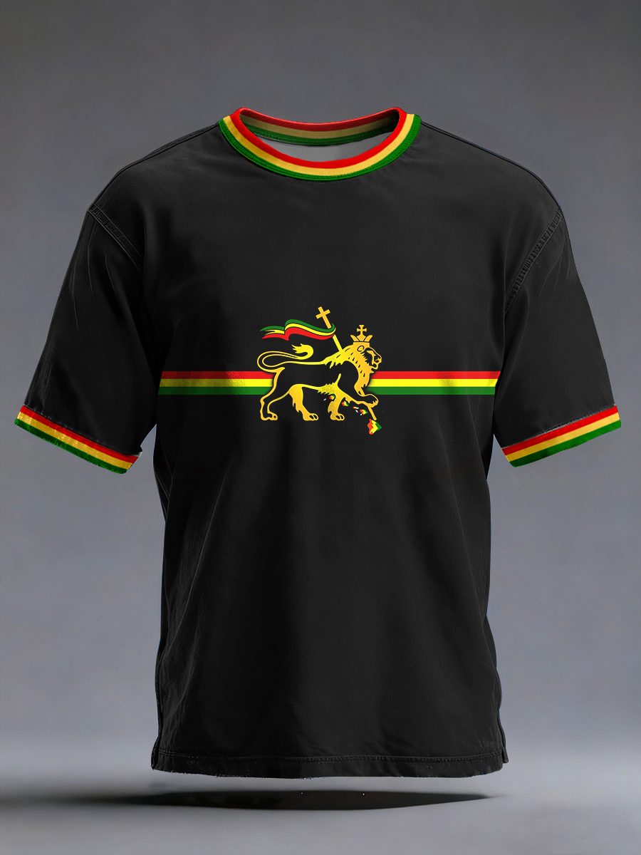 Men's Reggae Music Inspired Lion Print T-Shirt