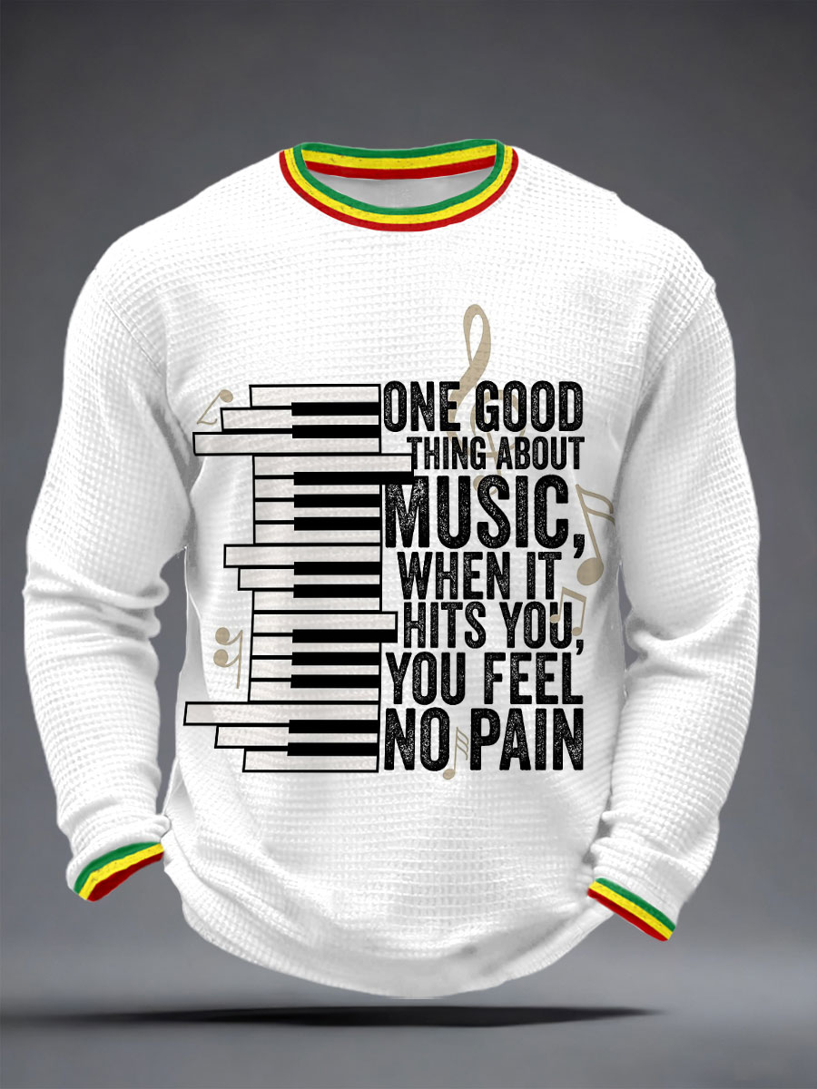 Men's 'One good thing about music, when it hits you, you feel no pain' waffle knit T-shirts