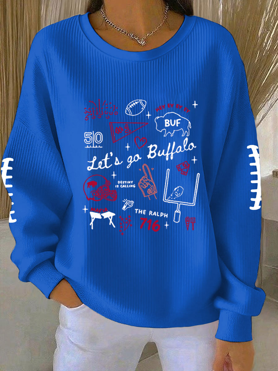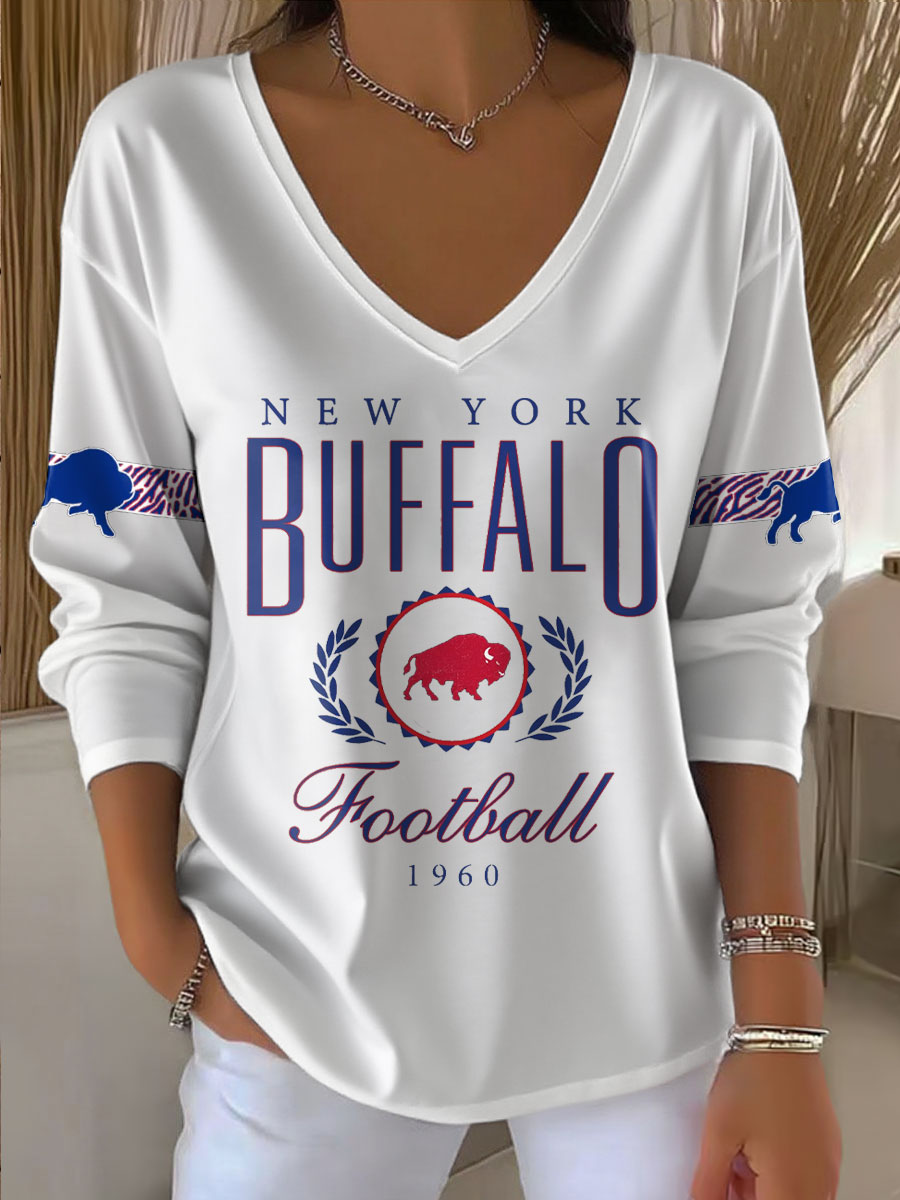 Women's Buffalo Print Football Fans Gameday Casual Long Sleeve T-Shirt