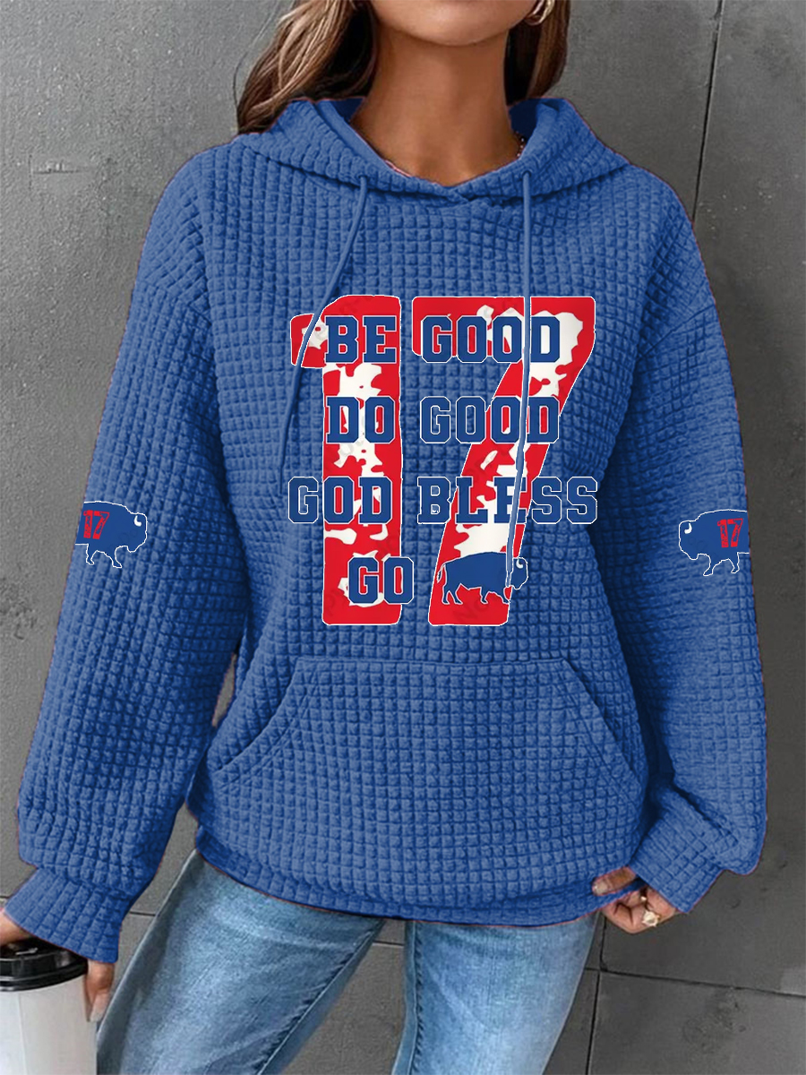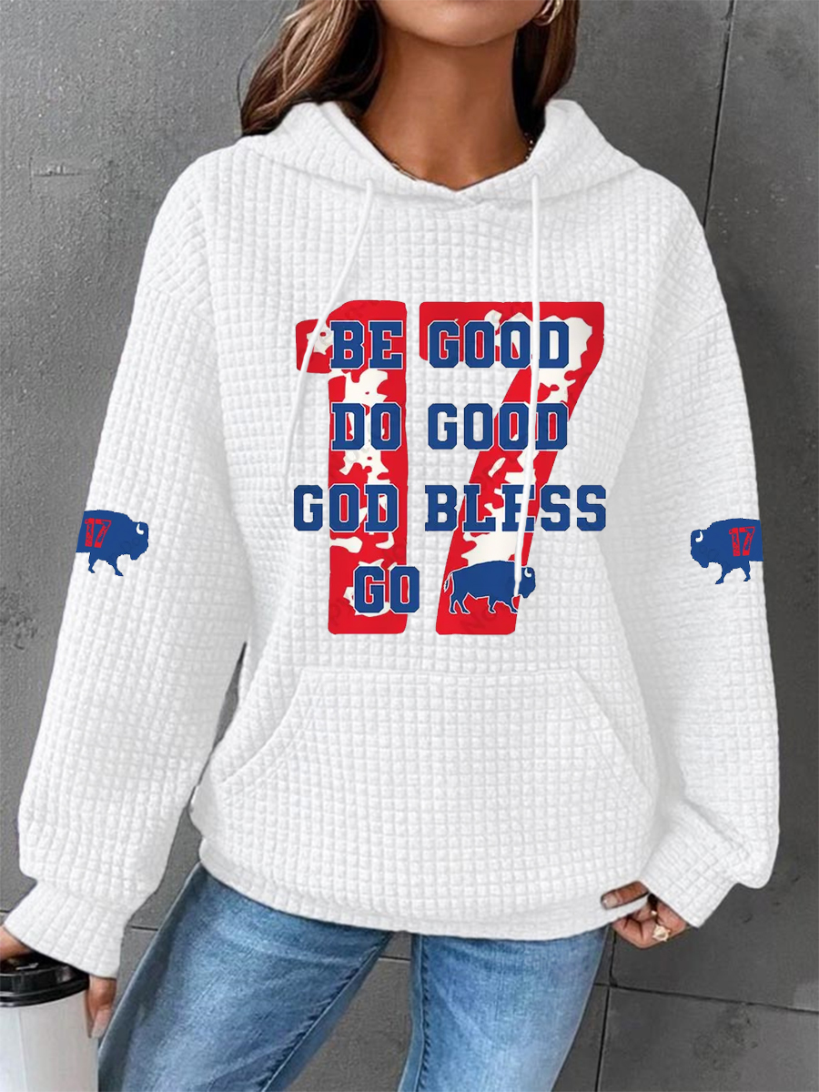 Women's Be Good Do Good God Bless Go Bills Football Fans Gameday Casual Waffle Hoodie