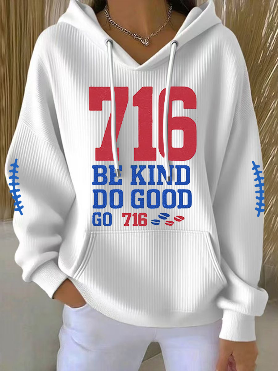 Women's Buffalo Print Football Fans Gameday Casual Waffle Hoodie