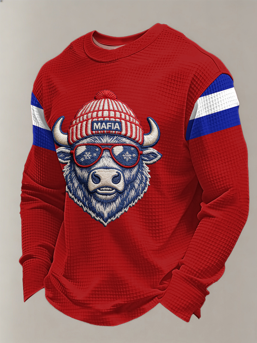 Men's Bills Mafia Football Fans Gameday Casual Waffle Long Sleeve T-Shirt