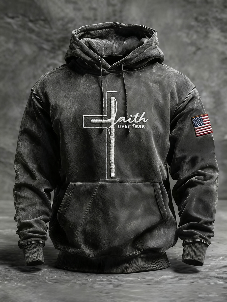 Men's Faith Over Fear Faith Cross Hoodie with Pockets