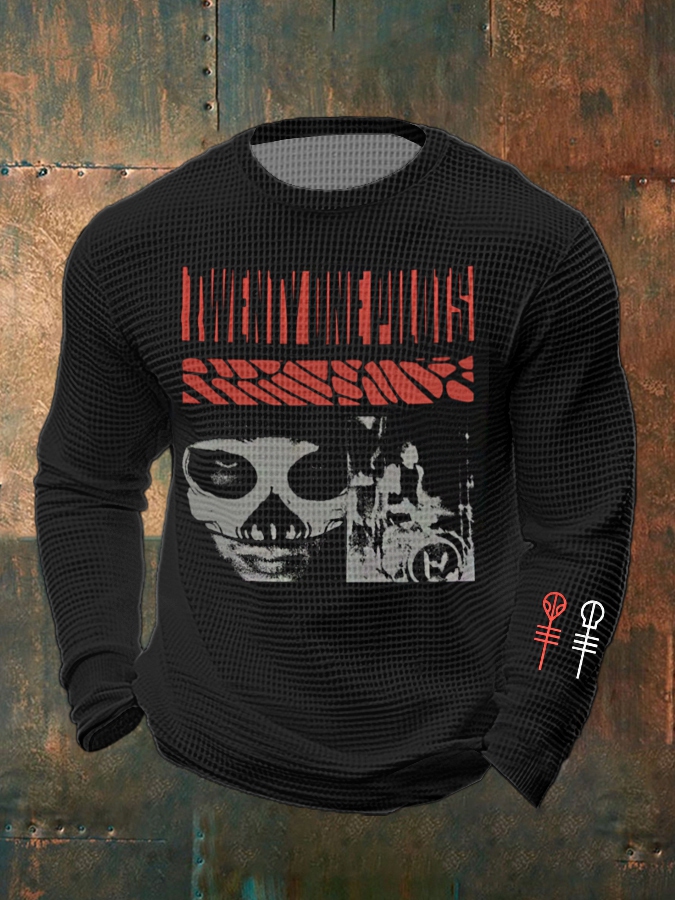 Men's Rock Print Waffle Long Sleeve T-Shirt