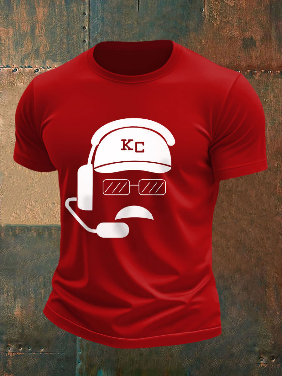 Men's American Football Coach Waffle Print Casual T-Shirt