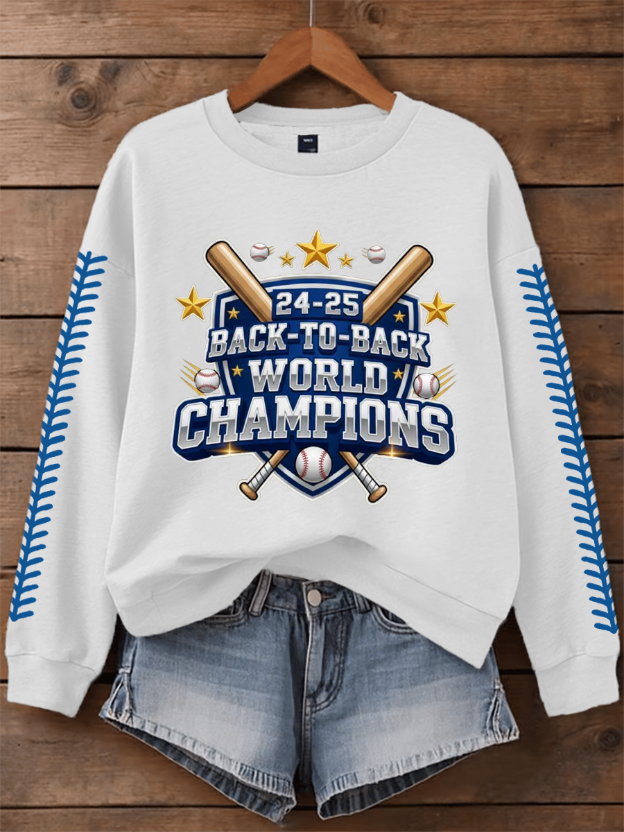 Women's Back To Back World Champions Baseball Print Regular Sweatshirt