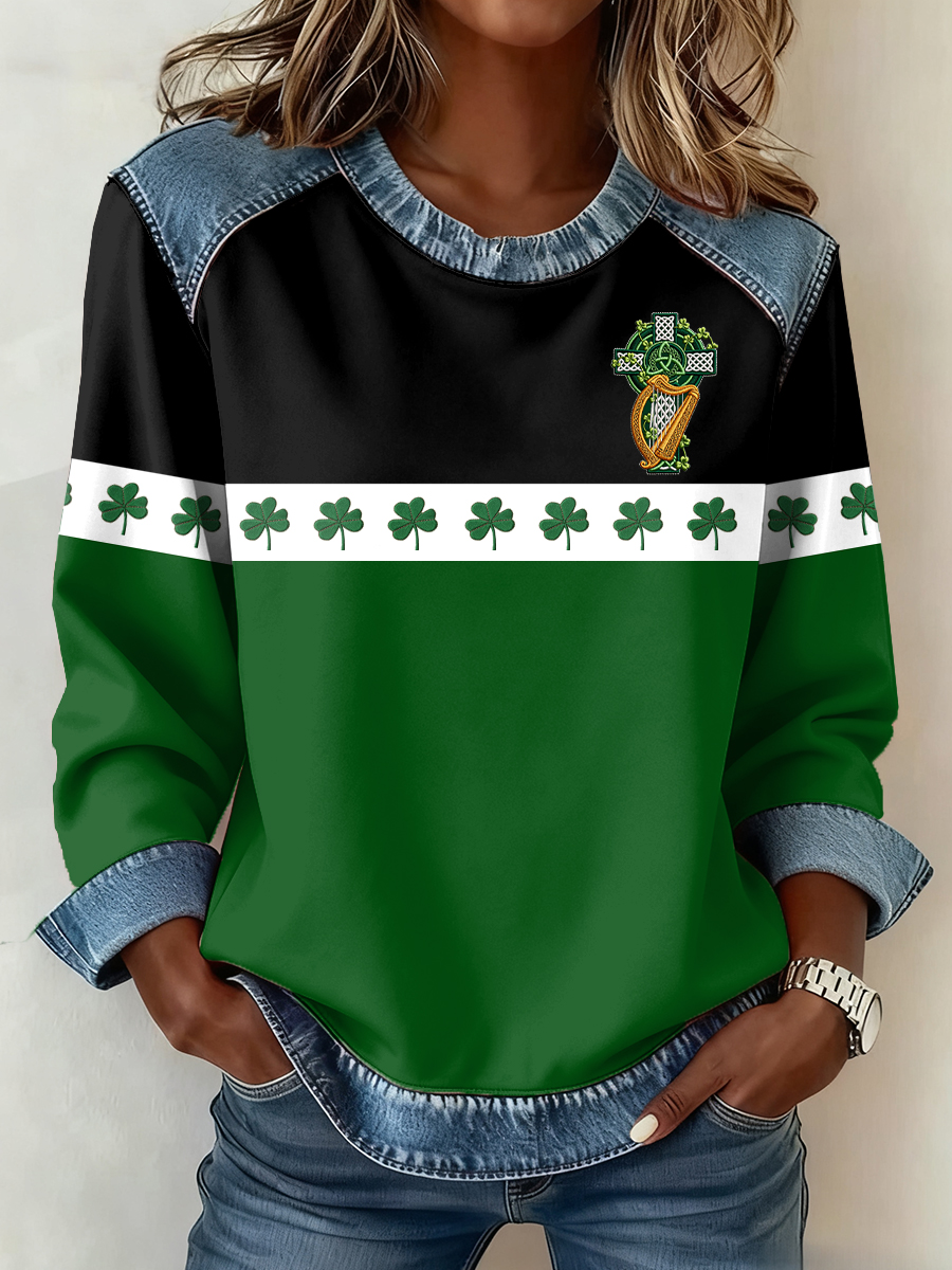 Women's St. Patrick's Day Pattern Patchwork Art Sweatshirt