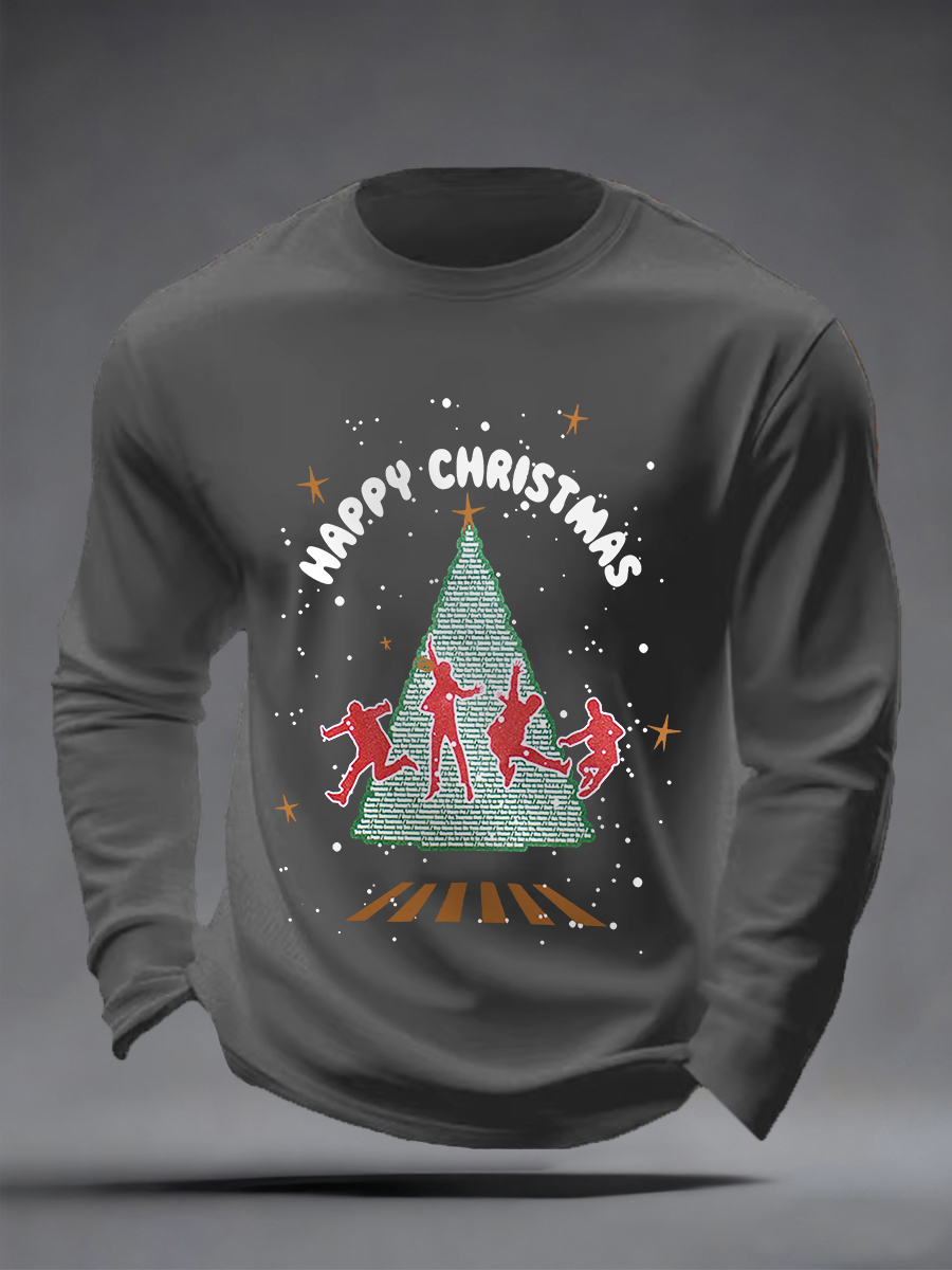 Men's Merry Christmas Retro Classic Legendary Rock Band Print Casual Long Sleeve T-Shirt
