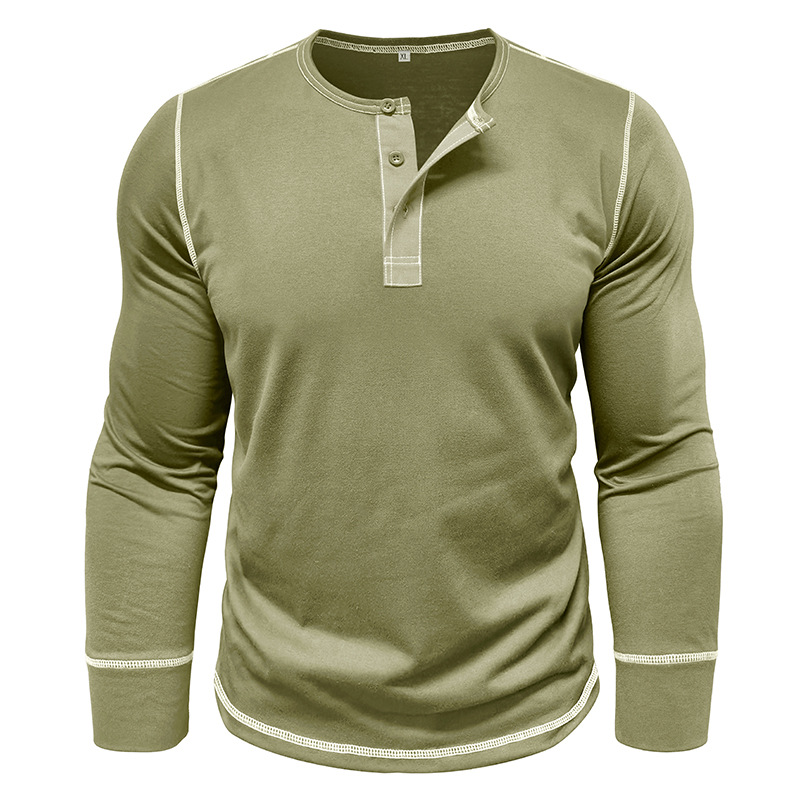 Men's Solid Color Casual Henley Collar Long-Sleev T-Shirt