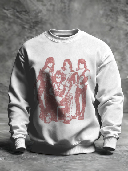 Men's Rock Band Print T Crew Neck Sweatshirt